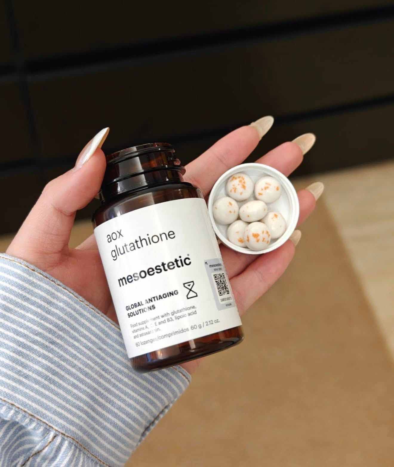 Hướng dẫn sử dụng viên uống trắng da Aox Glutathione Mesoestetic