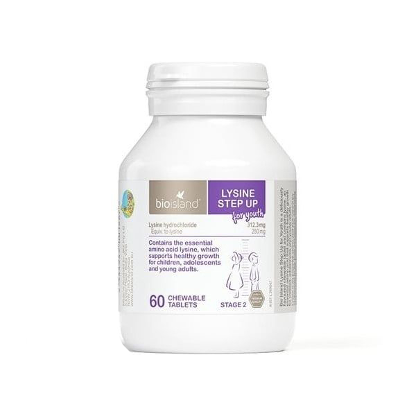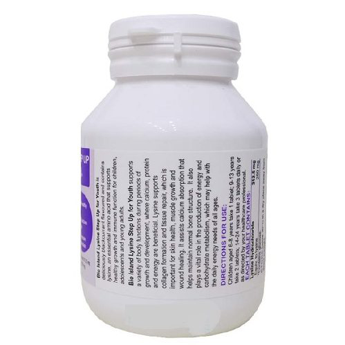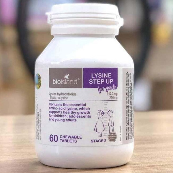 Viên uống tăng chiều cao Bio Island Lysine Step Up For Youth của Úc bổ sung Lysine – một loại acid amin cần thiết cho quá trình phát triển của trẻ, hỗ trợ hấp thu canxi tốt hơn, cải thiện chiều cao, giảm còi xương ở trẻ