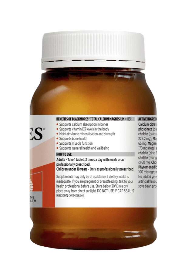 Thành phần Blackmores Total Calcium & Magnesium D3 200 viên