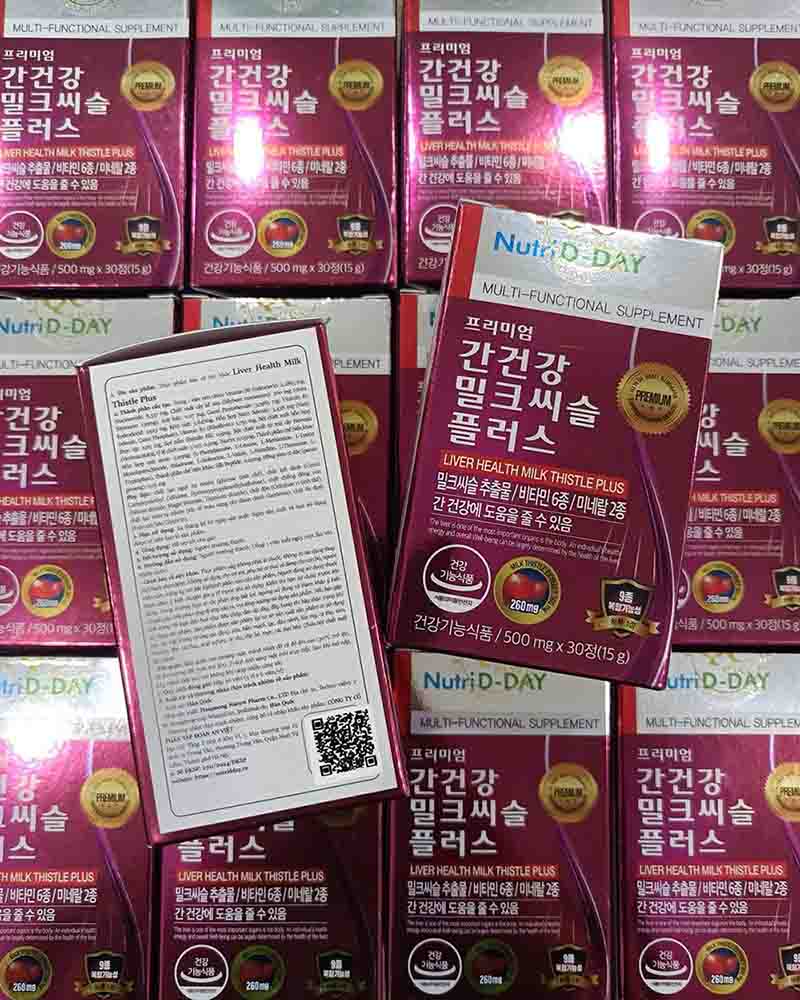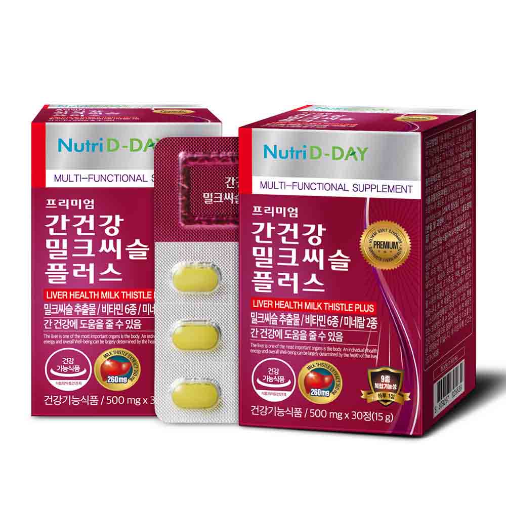 Bổ gan Premium Liver Health Milk Thistle Nutri D Day chiết xuất cây kế sữa chuẩn kết hợp hơn 10 loại thảo dược quý như hồng sâm, nấm shiitake, oriental raisin, taurine, cùng vitamin và khoáng chất cần thiết, hỗ trợ cải thiện men gan, giảm mệt mỏi và bảo vệ gan trước tác nhân gây hại.