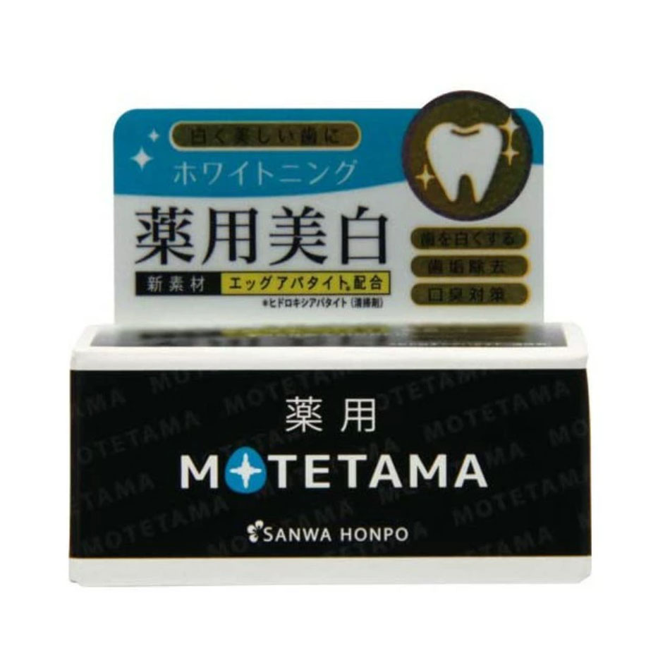 Bột tẩy trắng răng Nhật Bản Motetama Sanwa Honpo công thức chứa Egg Apatite – hoạt chất chiết xuất từ vỏ trứng, có khả năng hấp phụ mảng bám, cặn màu trên bề mặt răng một cách nhẹ nhàng, giúp răng trông trắng sáng và sạch sẽ hơn mà không gây mài mòn men răng.