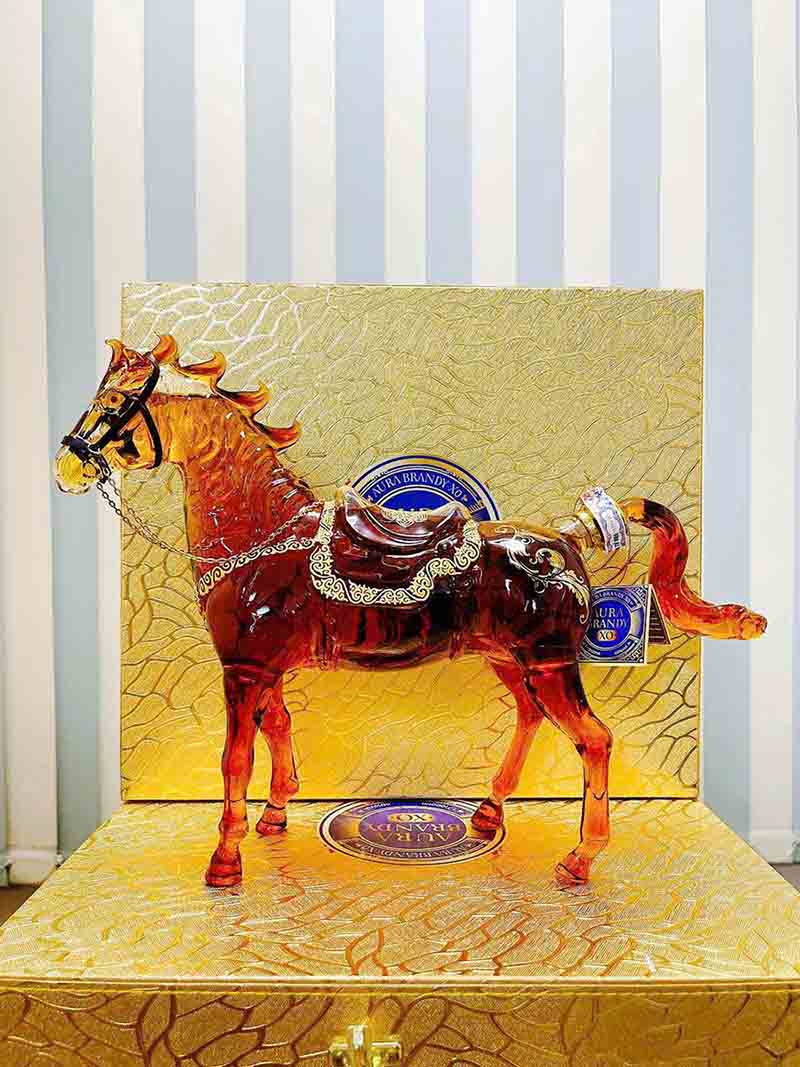 Chai rượu hình con ngựa Aura Brandy XO Pháp 1000ml