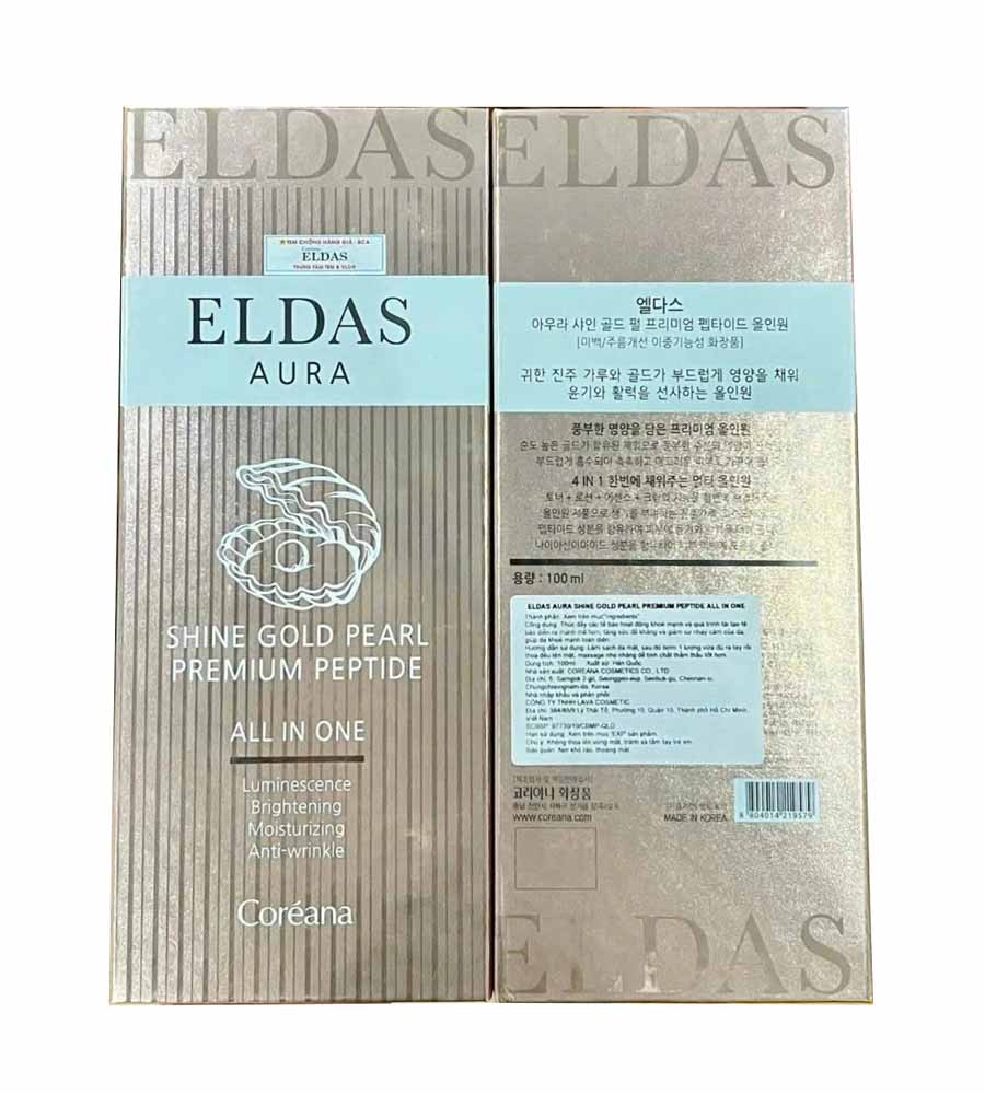 - Tất cả dưỡng chất tinh túy nhất cho da: tinh chất vàng, tinh chất collagen, tinh chất dưỡng ẩm, dưỡng trắng và các loại vitamin được hội tụ trong một sản phẩm “Eldas Aura All In One”