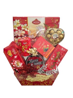 Giỏ quà Tết nổi bật với thiết kế sang trọng, tinh tế và mang đậm phong cách truyền thống hòa quyện cùng sự hiện đại. Sắc xanh chủ đạo kết hợp với họa tiết vàng ánh kim tạo nên sự thanh lịch, tao nhã, thể hiện lời chúc bình an, phú quý và thịnh vượng trong dịp năm mới. Đây là món quà lý tưởng để trao gửi tình cảm, lòng tri ân trong các dịp lễ Tết.