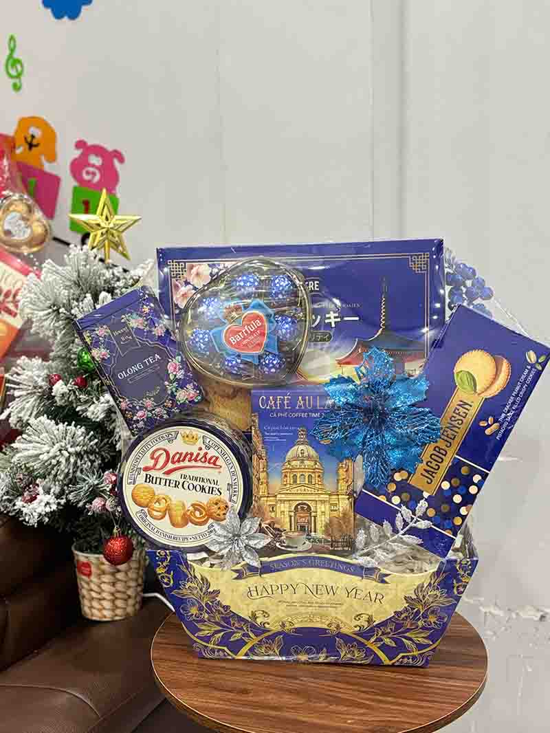 - Bánh kẹo bao gồm các loại bánh quy, socola thượng hạng được đóng gói đẹp mắt, phù hợp với khẩu vị của nhiều người, mang lại hương vị ngọt ngào của tình thân.