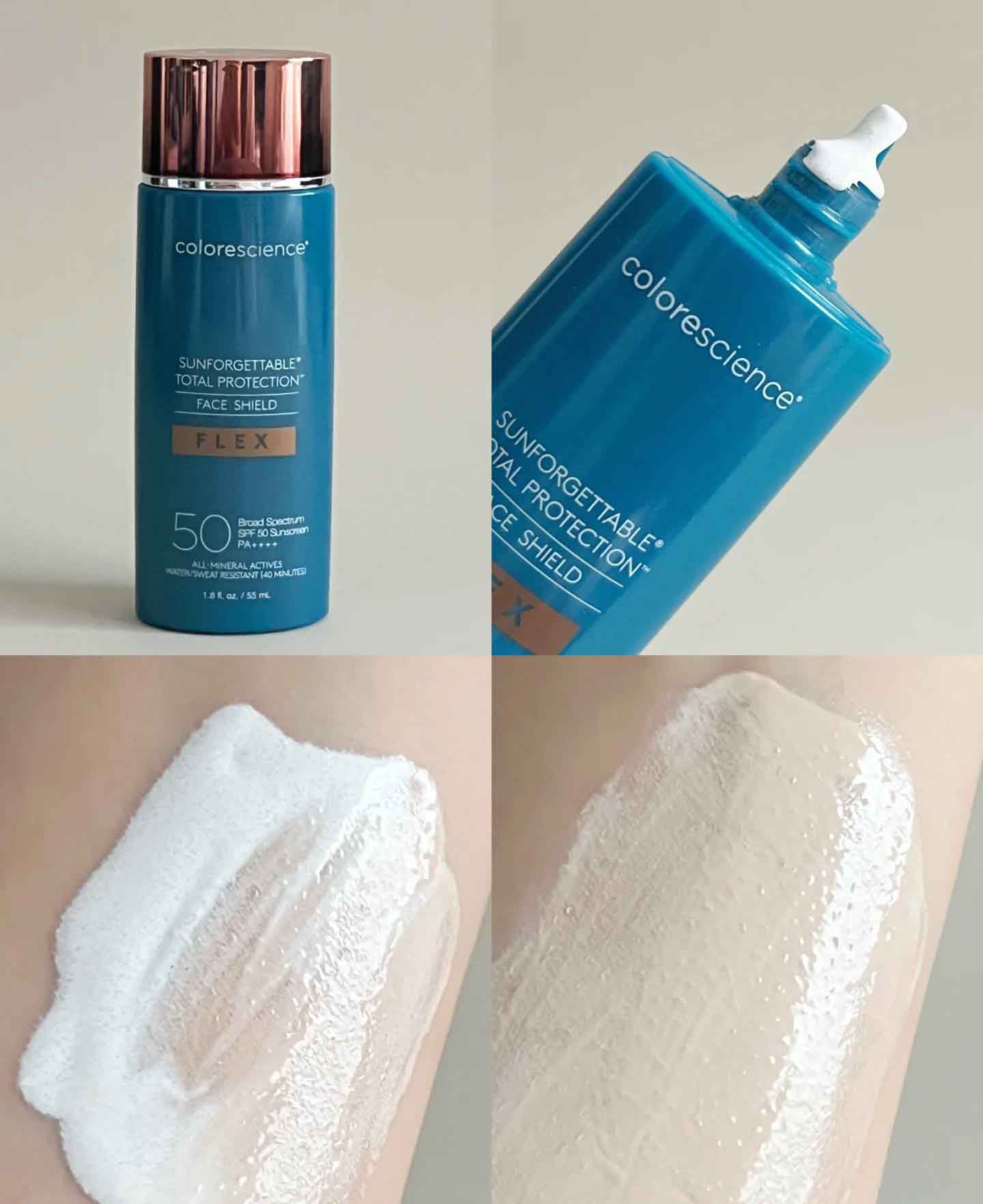 - Kem chống nắng Colorescience ứng dụng công nghệ sắc tố bọc kín Flex, các hạt màu được bao bọc thông minh, chỉ “vỡ” ra khi bạn tán đều trên da, giúp sắc tố sẽ tự điều chỉnh để tiệp với tông da thật, tạo hiệu ứng nâng tông tự nhiên, che phủ nhẹ nhàng lỗ chân lông và khuyết điểm nhỏ