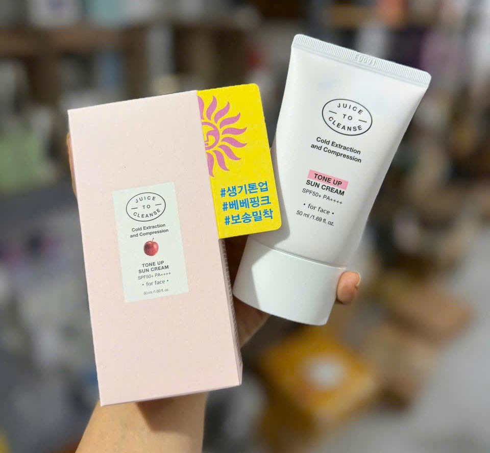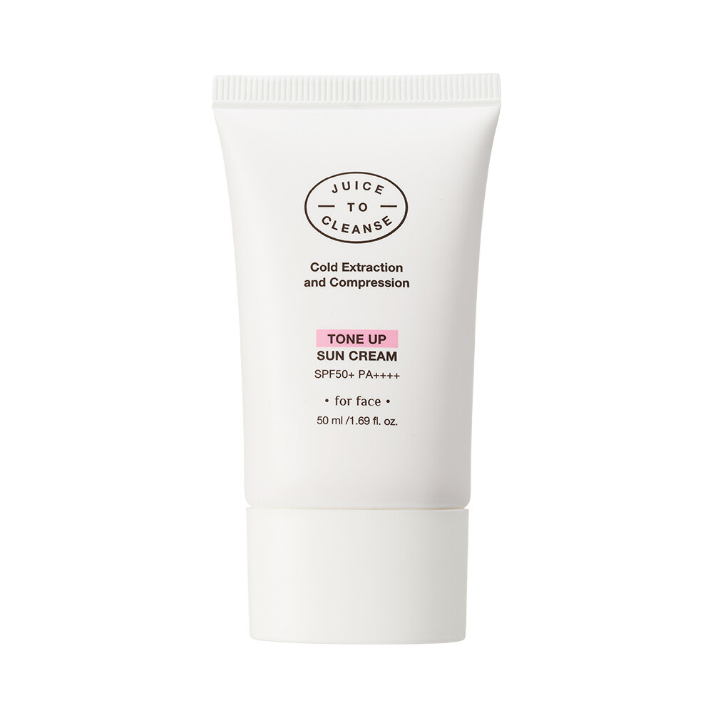 - Juice To Cleanse Tone Up Sun Cream mang lại lớp finish hồng nhẹ, tươi tắn, che phủ nhẹ tình trạng da xỉn màu, làm đều màu da, tạo hiệu ứng da sáng khỏe, rạng, c thể sử dụng thay kem lót trang điểm