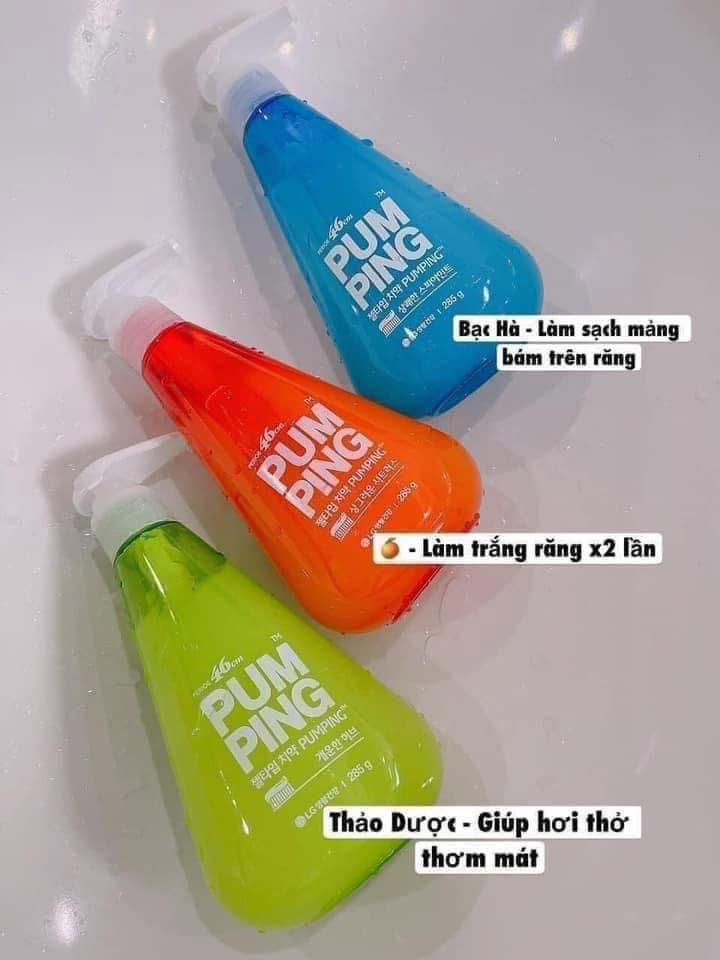 Kem đánh răng Pumping được thiết kế dạng chai vòi bơm độc đáo, chỉ cần ấn nhẹ, kem sẽ được lấy ra nhanh, vệ sinh và hạn chế lãng phí, hỗ trợ bảo vệ răng miệng khỏi vi khuẩn, giúp răng trắng sáng tự nhiên, mang đến hơi thở thơm mát lâu dài.