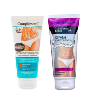 Bên cạnh, Compliment For Beautiful Body màu xanh dạng gel, hãng còn có phiên bản kem màu hồng, ứng dụng công nghệ LPG mô phỏng phương pháp massage LPG nổi tiếng giúp lưu thông máu, kích thích phân hủy mỡ.
