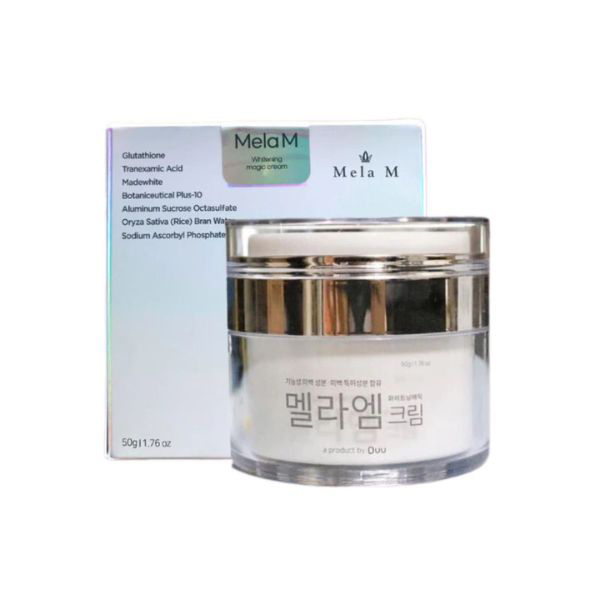 Kem nám Mela M kết hợp giữa hoạt chất như Niacinamide, Arbutin, Glutathione và chiết xuất thiên nhiên lành tính, dạng kem dễ thẩm thấu, không nhờn rít, phù hợp để sử dụng hằng ngày, hỗ trợ giảm thâm nám, nuôi dưỡng da trắng hơn