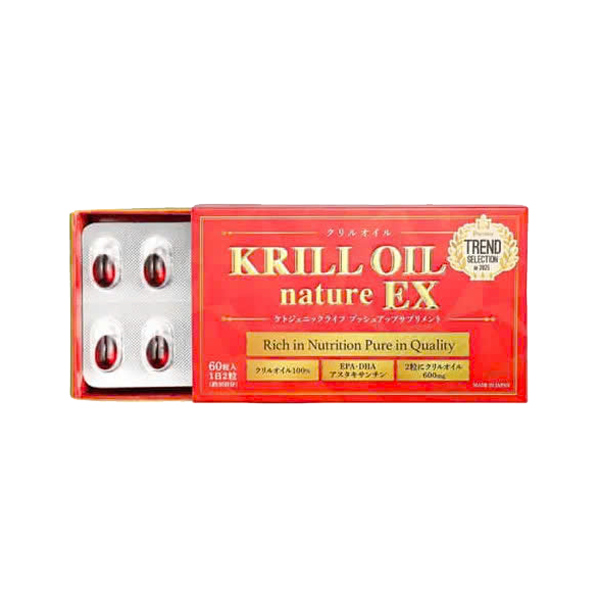 Krill Oil Nature Ex là dầu nhuyễn thể hàm lượng dinh dưỡng cao, dạng phospholipid dễ hấp thụ, giúp Omega-3 dễ dàng vào hệ tuần hoàn, hỗ trợ tim mạch, mắt, tốt cho não và tăng cường sức khỏe tổng thể