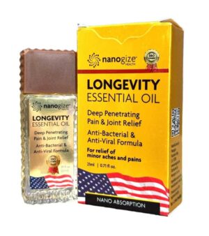 Longevity Essential Oil là dòng tinh dầu được sản xuất theo công nghệ nano vàng, kết hợp tinh chất thiên nhiên quý hiếm, hỗ trợ giảm các cơn đau nhức cơ, khớp, đau đầu, cảm cúm và say xe, mùi thơm dễ chịu và khả năng kháng khuẩn