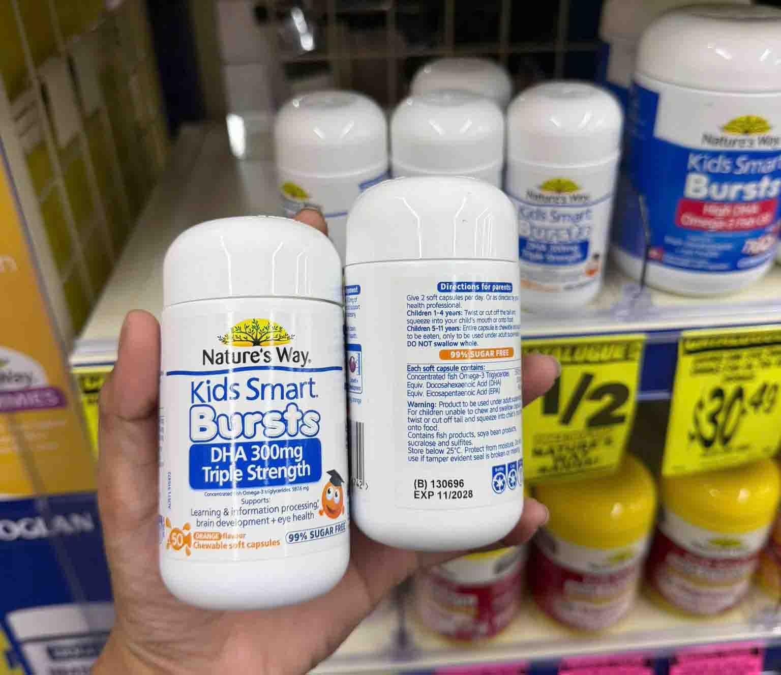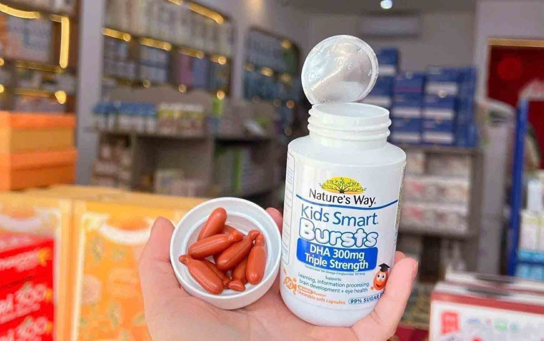 Bé nhà mình 6 tuổi hơi lười ăn cá nên mình tìm mua DHA bổ sung. Sau hơn 1 tháng dùng Nature’s Way Kids Smart Bursts DHA 300mg thấy bé tập trung học tốt hơn, nhớ bài nhanh hơn. Viên mềm vị cam nên bé chịu ăn, không phải ép