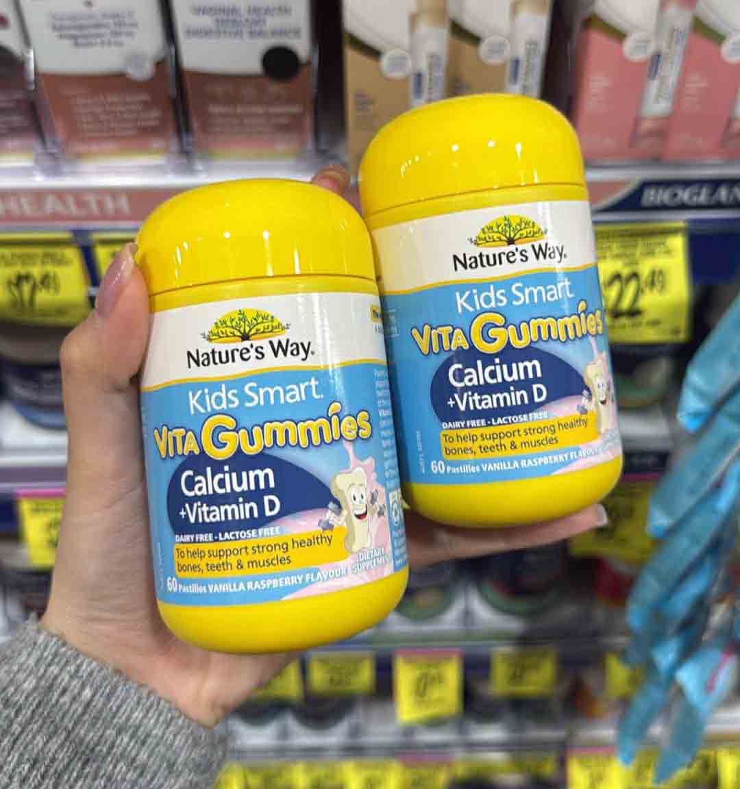 Nature’s Way Vita Gummies Calcium Vitamin D hỗ trợ trẻ phát triển hệ xương và răng chắc khỏe, đồng thời tăng cường miễn dịch và hỗ trợ cơ bắp, với hương vị hấp dẫn, dễ dùng cùng công thức khoa học