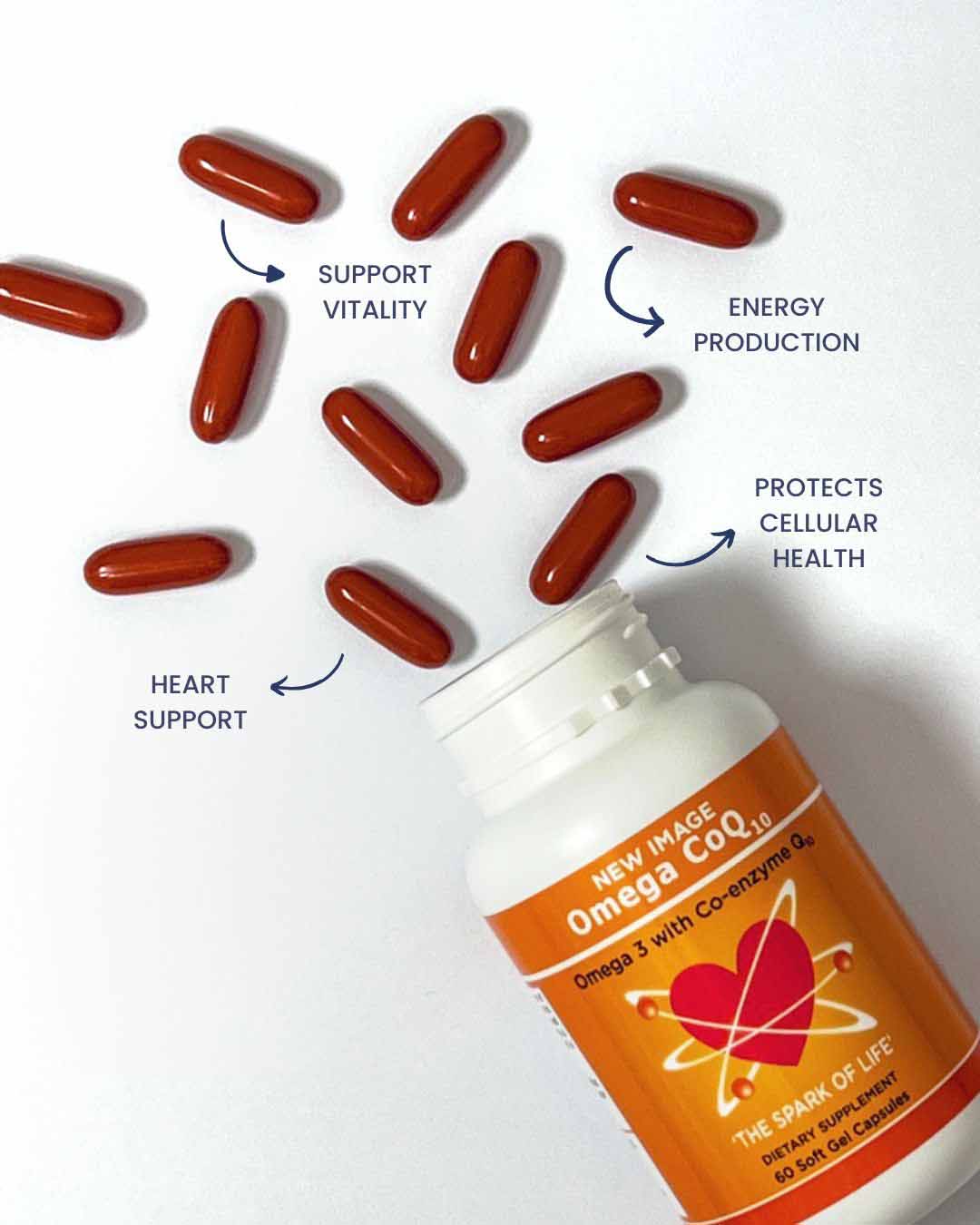 New Image Omega Coq10 kết hợp Omega 3 tự nhiên và Coenzyme Q10, hỗ trợ tim mạch, tăng cường tuần hoàn máu, não bộ và chống lão hóa da, cải thiện các vấn đề về thị lực và khớp xương