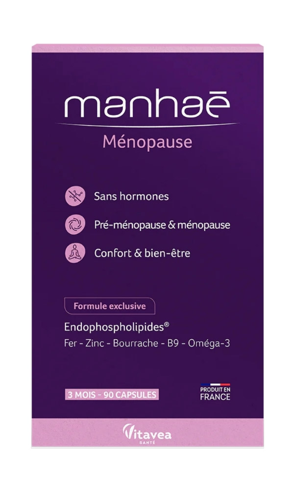 Nội tiết Manhae dành riêng cho phụ nữ trong giai đoạn tiền mãn kinh và mãn kinh, hỗ trợ cân bằng nội tiết tố, giảm thiểu các triệu chứng khó chịu mà không sử dụng hormone, với công thức Endophospholipides® kết hợp cùng Omega-3, kẽm, sắt, vitamin B9 và dầu hoa lưu ly (bourrache), hỗ trợ cho sức khỏe, sắc đẹp và chất lượng cuộc sống của phụ nữ.