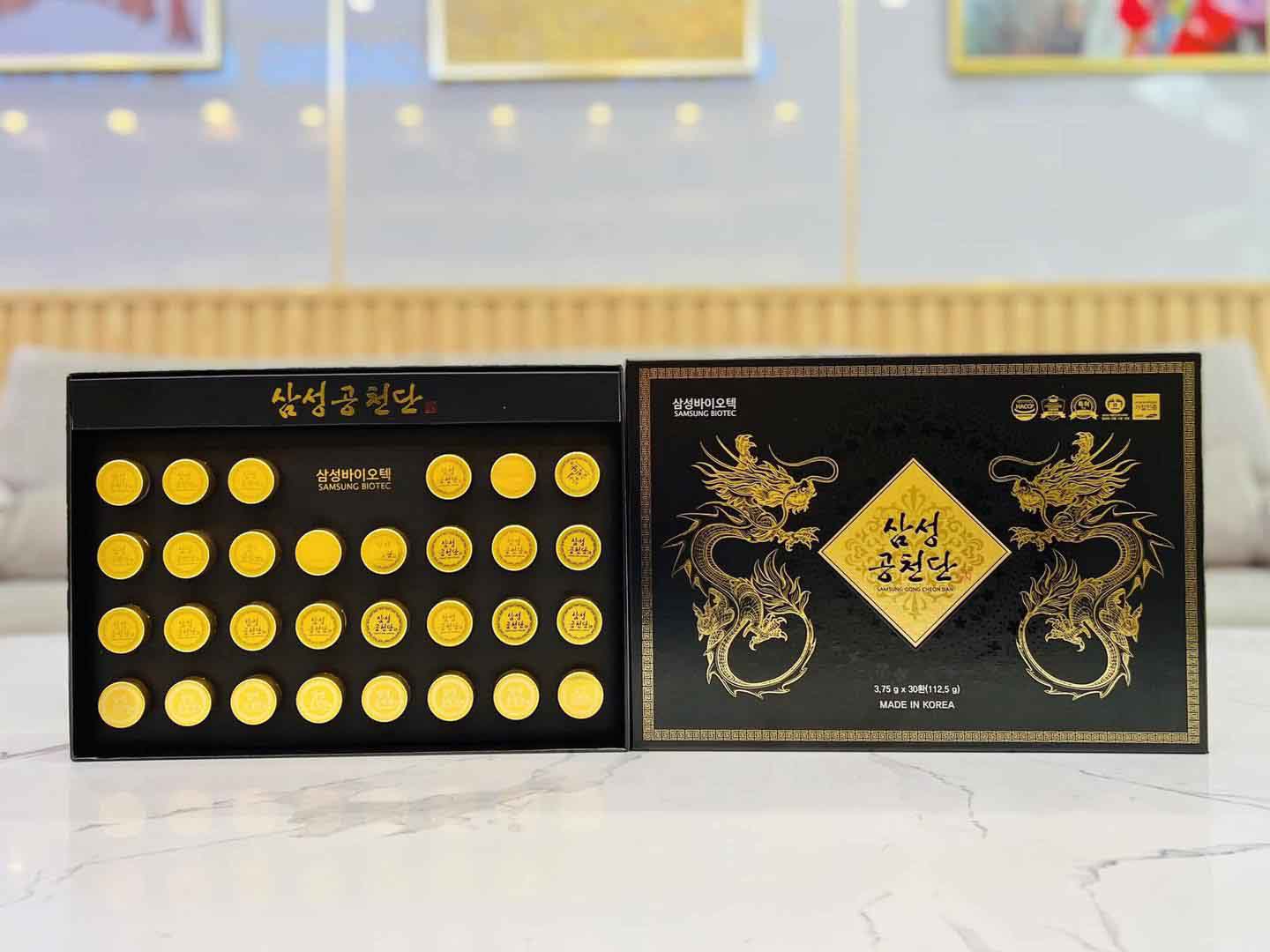 Samsung Gong Cheon Dan được bào chế từ nhiều thảo dược quý hiếm theo công thức Đông y, hỗ trợ tăng cường tuần hoàn máu, cải thiện chức năng não bộ, giúp minh mẫn tinh thần và nâng cao sức khỏe
