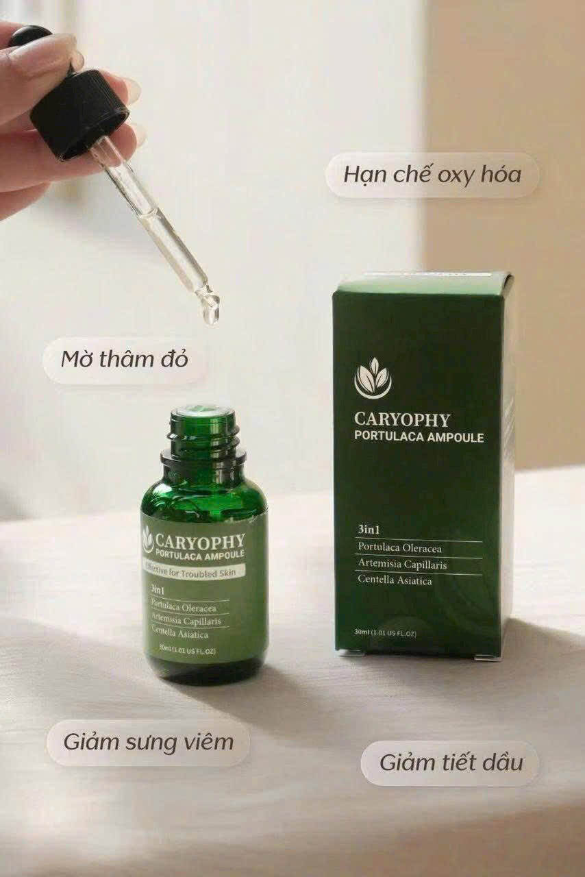 Da mình thuộc loại da dầu mụn, dễ bị đỏ khi thay đổi thời tiết. Sau khoảng 2 tuần dùng Caryophy Portulaca Ampoule, mình thấy vùng da mụn viêm dịu đi khá nhanh, nốt đỏ cũng giảm rõ. Tinh chất thấm nhanh, không bị nhờn rít nên rất hợp với da dầu như mình