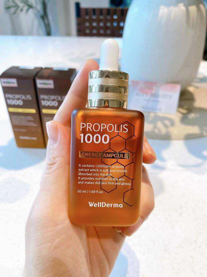 Serum keo ong Wellderma nhờ keo ong nồng độ cao kết hợp cùng Niacinamide và loạt hoạt chất phục hồi da, hỗ trợ tái sinh làn da khỏe khoắn, căng mướt trở lại.