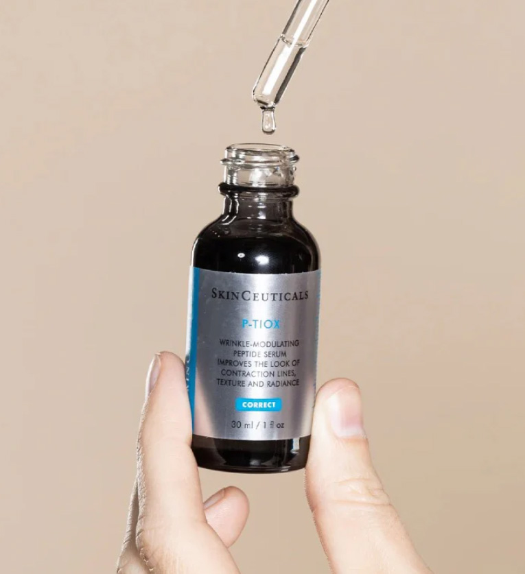 Skinceuticals P Tiox Serum công thức peptide tiên tiến kết hợp cùng các hoạt chất dưỡng da mạnh mẽ, P-TIOX, không chỉ giúp làm mờ nếp nhăn mà còn cải thiện kết cấu da, tăng độ sáng và mang lại làn da mịn màng