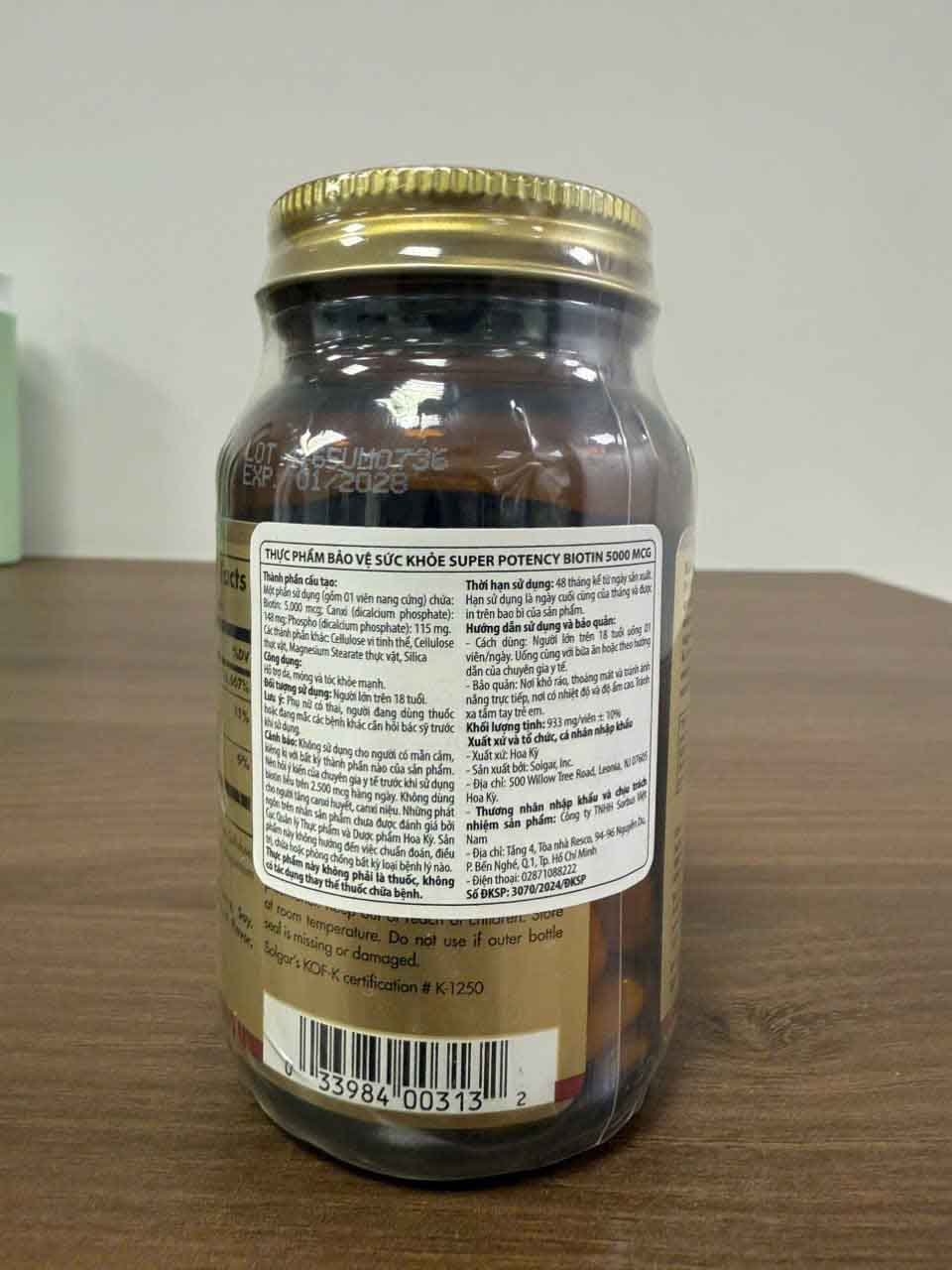 Hướng dẫn sử dụng viên hỗ trợ da móng tóc Solgar Super Potency Biotin 5000 mcg