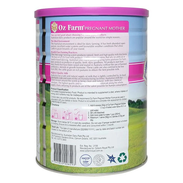 Sữa bầu Oz Farm được thiết kế đặc biệt cho phụ nữ trước, trong và sau thai kỳ, với công thức cân bằng chứa vitamin, khoáng chất, DHA, axit folic và chất xơ FOS, hỗ trợ mẹ bầu duy trì sức khỏe, hỗ trợ thai nhi phát triển cả về thể chất lẫn trí não