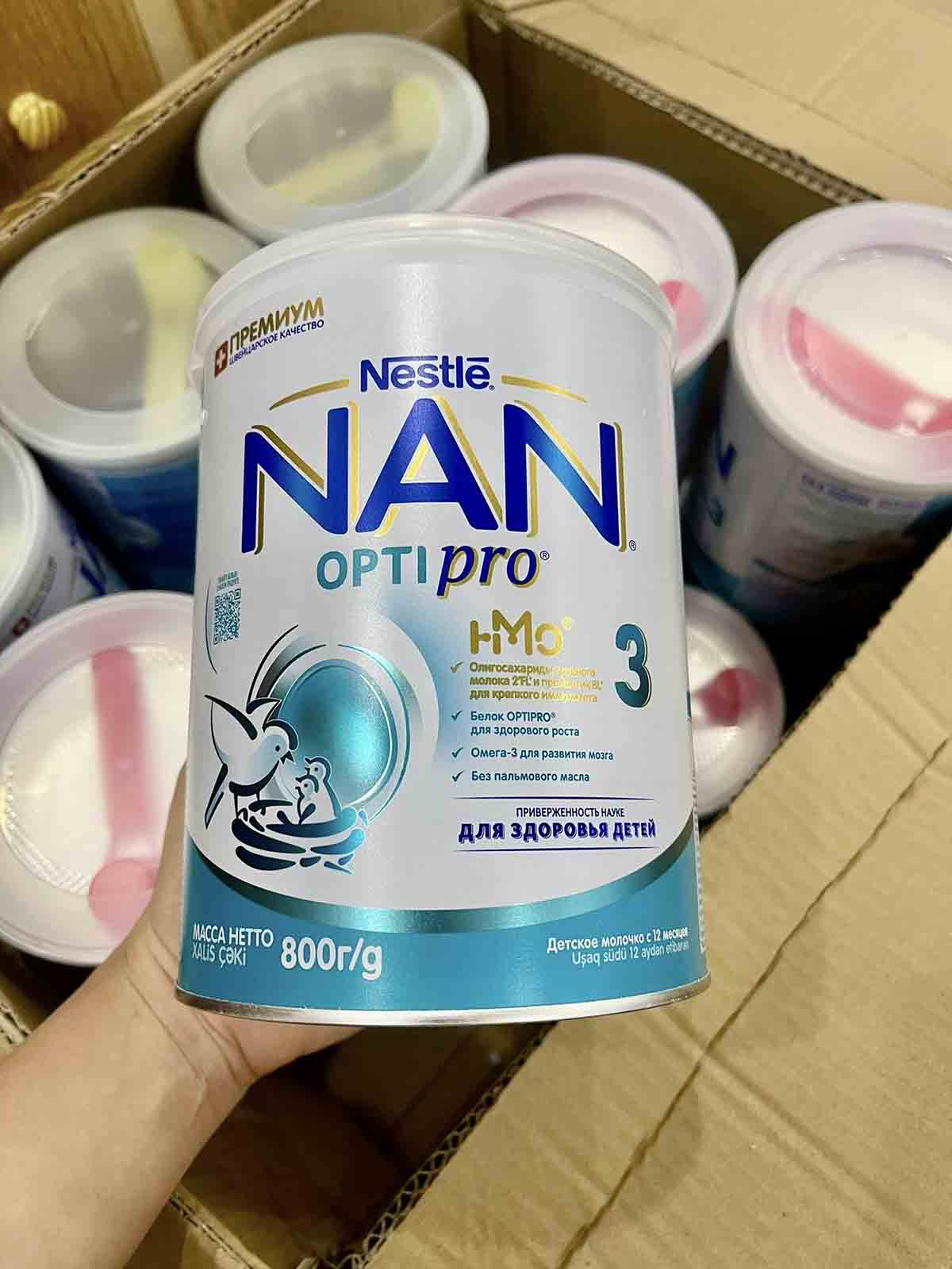 Hộp chắc chắn, tem rõ ràng. Bé nhà mình bú xong ít bị trớ hơn. Sẽ tiếp tục dùng đến NAN 2