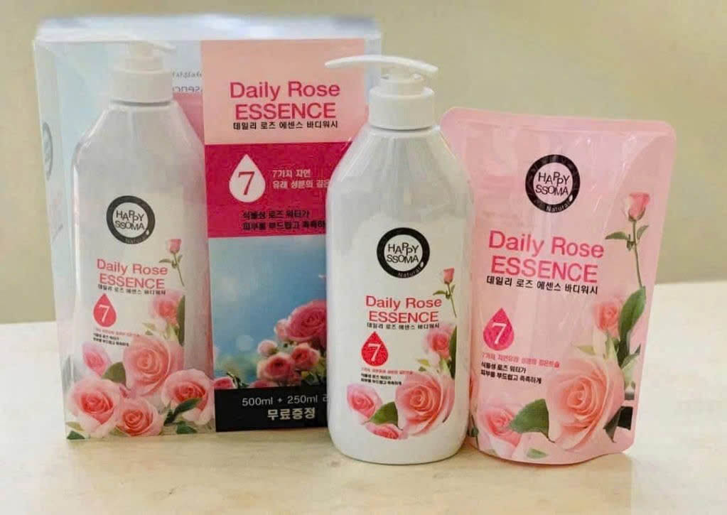 Mình mua bộ 500 ml + 250 ml của Happy SSoma vì nghe mùi hoa hồng rất thơm — thật sự khi dùng cảm giác rất thư giãn, da mình vốn hơi khô nhưng sau khi dùng vài ngày đã mềm hơn rõ ràng. Mình rất thích và sẽ mua lại