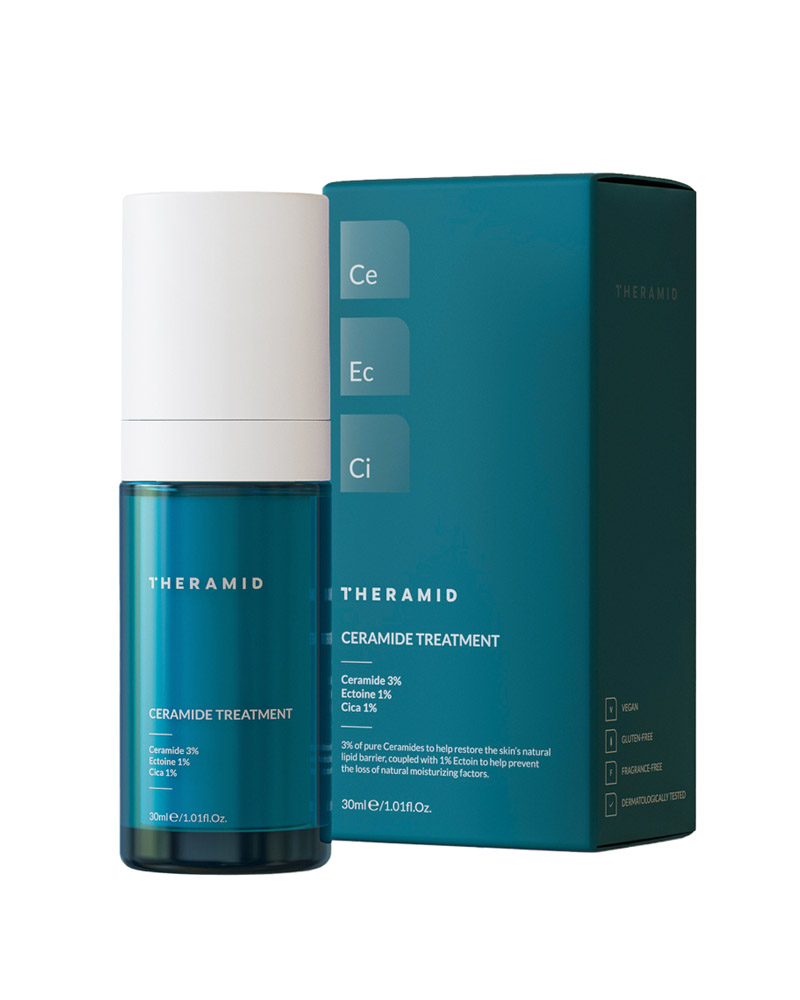 Theramid Ceramide Treatment công thức đột phá chứa 3% Ceramide và các hoạt chất hỗ trợ mạnh mẽ, giúp phục hồi cấu trúc tự nhiên của da, dưỡng ẩm mạnh mẽ và làm dịu làn da, đặc biệt phù hợp cho những ai đang tìm kiếm giải pháp dưỡng ẩm bền vững, phục hồi da yếu, da tổn thương và nhạy cảm.