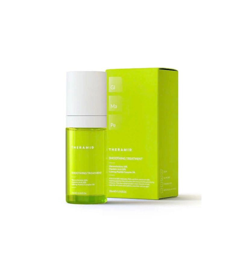 Theramid Smoothing Treatment kết hợp AHA + PHA + Peptide giúp da mịn màng, sáng khỏe, trẻ trung và đều màu, phù hợp cho mọi loại da, đặc biệt da nhạy cảm muốn phục hồi làn da mà không lo kích ứng