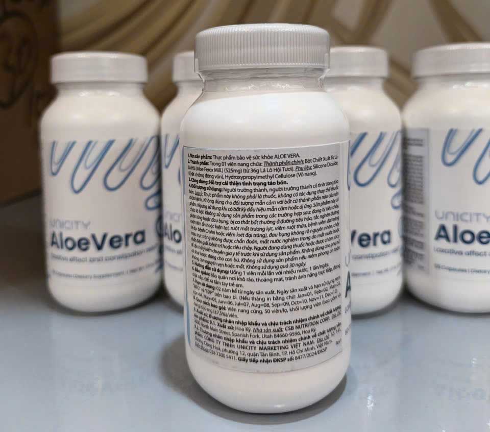 Unicity Aloe Vera Capsules với thành phần chính từ lá lô hội tươi Aloe Ferox Mill, hỗ trợ làm mềm phân, thúc đẩy nhu động ruột, giúp giảm táo bón